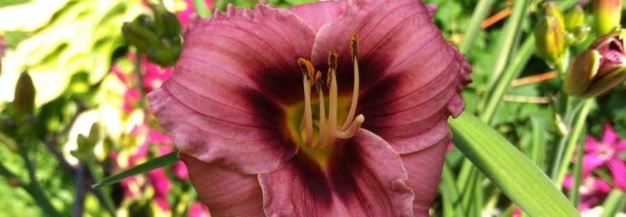Smokey is a poly-chrome blend of rose, pink and apricot bursting from the throat. It is ruffled and perfectly formed with more rose on the ruffled edge and seen as streaks on the petals. It is a dormant, diploid and at 18 inches, it can be placed near the front of the border. Though it is not very tall I would not call it a mini because the flower is nearly 6 inches. Another benefit is that it is an early re-bloomer so it will help fill in the lull after the irises stop blooming, and then continue into the main daylily season. It is a winner of the Lenington All American Award given to daylilies that perform well in any climate, and the good news just doesn’t stop. Smokey also won the Plouf Fragrance Award.