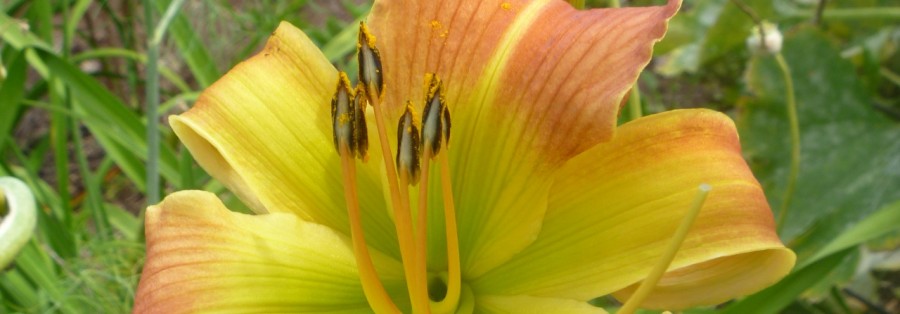 This very large dormant tetraploid holds 8 ½ inch flowers atop 36 inch tall scapes. It is a mid-season bloomer that also has extended bloom due to its heavy substance. The plant is quite impressive in the garden. The color is rusty orange to tan with a mahogany eye-zone above a yellow/green throat.