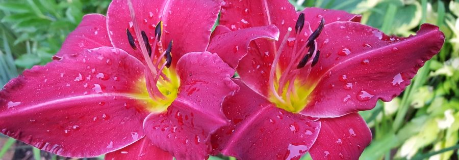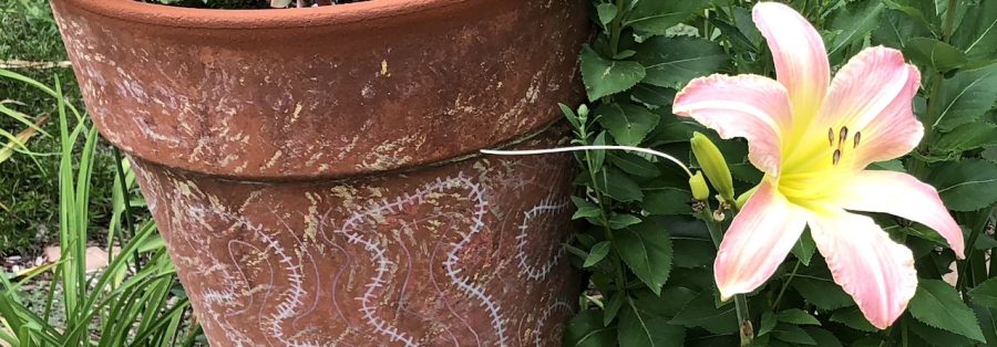 Grant a Wish was given to me to grow out as a seedling – Seedling LG2011#8. This is a 34 inch tall semi-evergreen tetraploid that has show stopping large blooms. The spatulate, unusual form flowers are 8 inches across and are such an interesting peachy pink color. I’ll call it baby pink but it looks more peach in twilight. There is a lighter pink halo and prominent mid-rib. The large throat is deep green inside turning pale yellow just before the halo starts. There is a slight ruffled or toothy edge and a thin white or light pink edge. They seem even bigger because they hold their petals out wide instead of curling.