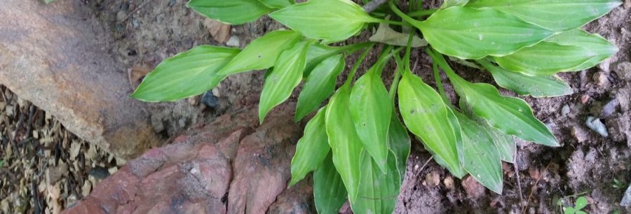This sport of H.’Pineapple Poll’ is a medium clump of long lance-shaped (4” x 10”) leaves and is wonderfully variegated.